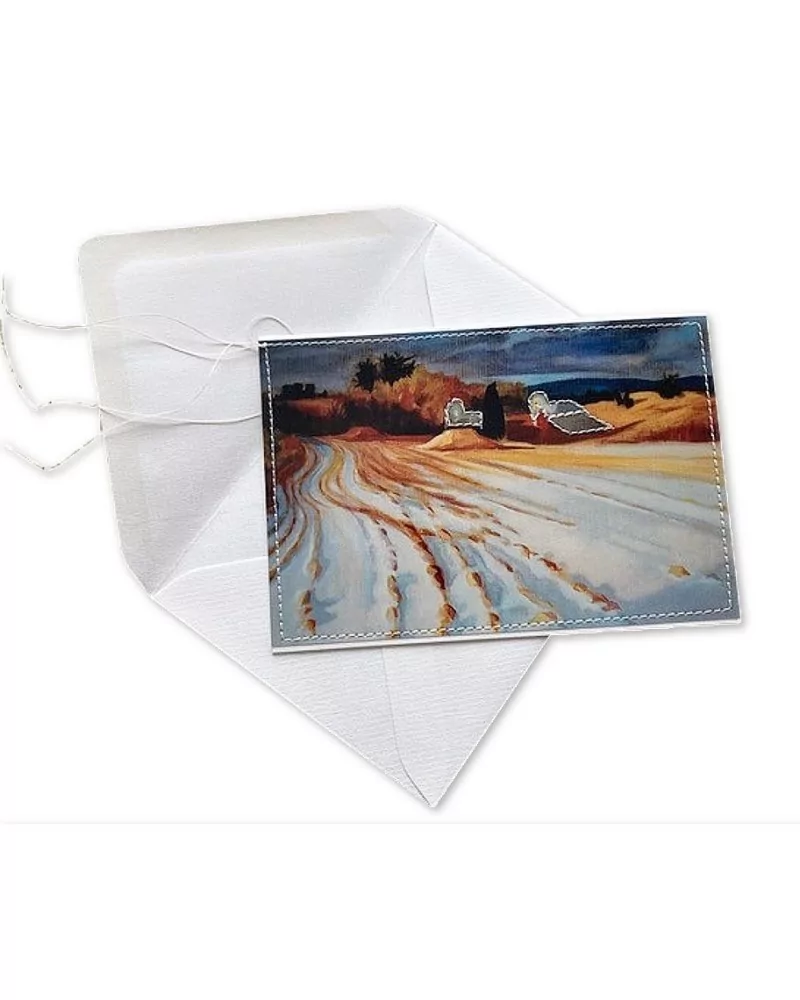 Glückwunsch- & Grusskarte - toits enneigés - mit fotografischem Motiv welche durch genähte Details zu etwas Besonderem wird. Die genähten Konturen und Ränder sind auf der Karteninnenseite sichtbar und bilden oftmals selbst ein Sujet.