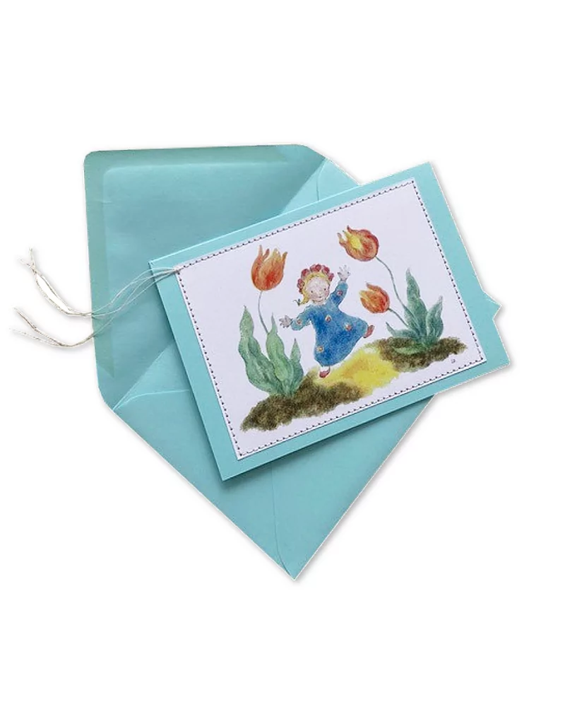 Glückwunsch- & Grusskarte genäht - tanz Meitli tanz - mit fotografischem Motiv welche durch genähte Details zu etwas Besonderem wird. Die genähten Konturen und Ränder sind auf der Karteninnenseite sichtbar und bilden oftmals selbst ein Sujet.