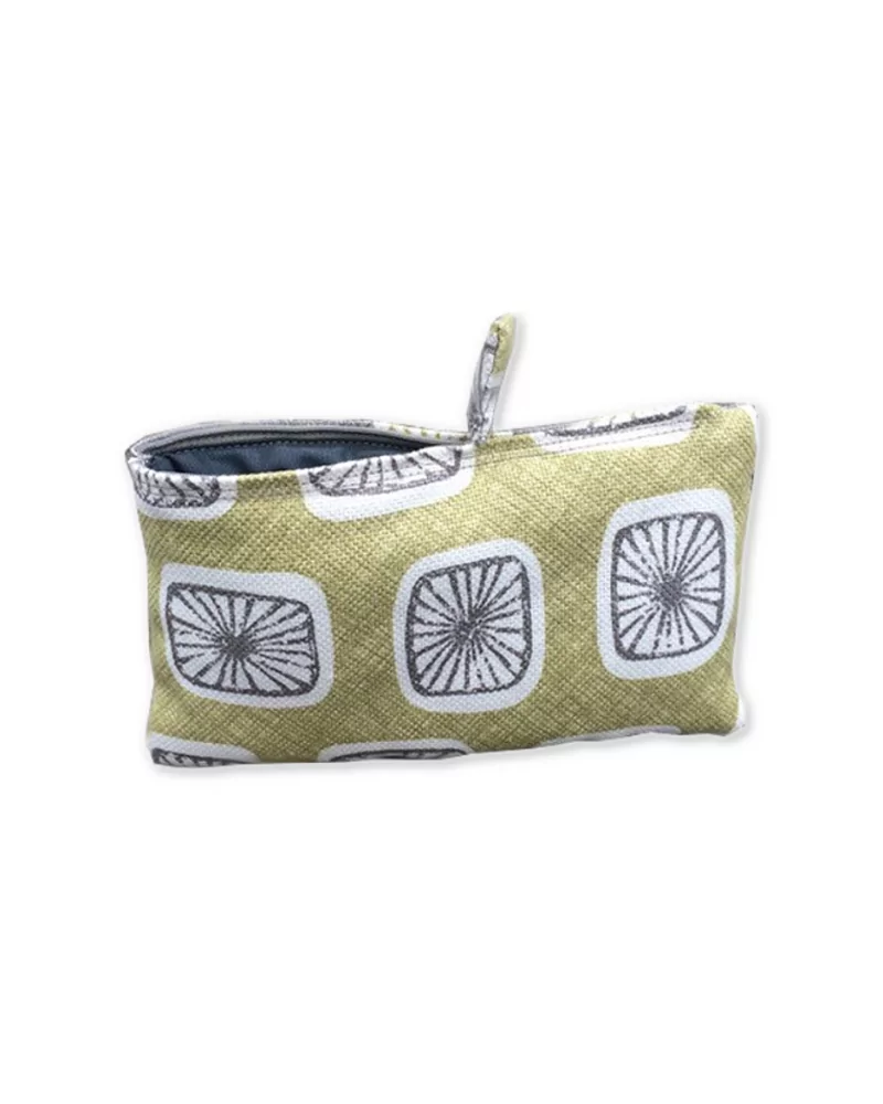Frauenhandtaschen können wahre Fundgruben sein. Der Bag in Bag 'Sonne im Quadrat pistache grün' aus Stoff nimmt die vielen Kleinigkeiten auf, damit das Kreative nicht ins Chaos kippt. Dabei sind die Taschen selbst kleine Kunstwerke, die meisten davon Unikate erstellt in Handarbeit in der Schweiz. Die Bag in Bag können natürlich auch als Necessaire, Etui usw. verwendet werden.